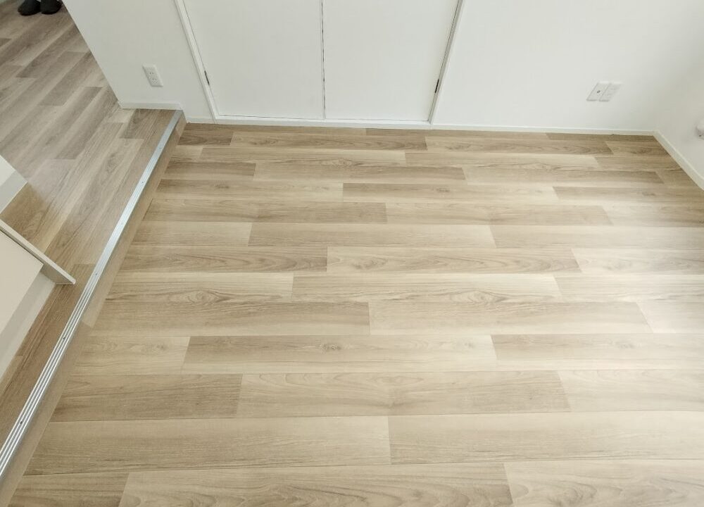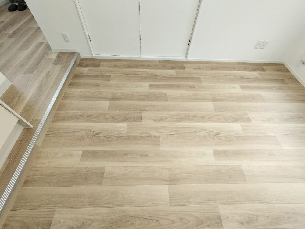 床 クッションフロア床工事 trust8113 2026年4月17日 スポンサーリンク 既存がタイルカーペットだったので下地処理としてリフォームシールを全面塗布+傷んでる箇所をパテ 木目柄のクッションフロアを張りました!! CF クッションフロア スポンサーリンク スポンサーリンク